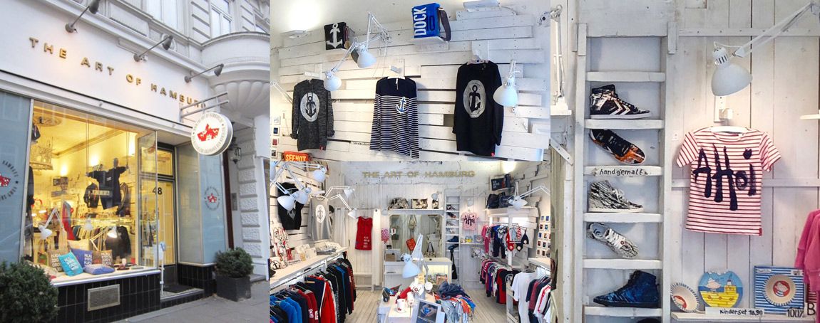 Seit 2006 ist Atelier und das Kaufhaus des Künstlers im Portugiesenviertel unten am Hafen. Wenn die großen Pötte schlafen, ist bei uns immer noch was los. Im gläsernen Atelier gleich neben dem Laden wird gekleckst, gemalt, bedruckt und neue Ideen für unsere maritimen Liebeserklärungen entstehen. Schaut mal vorbei!